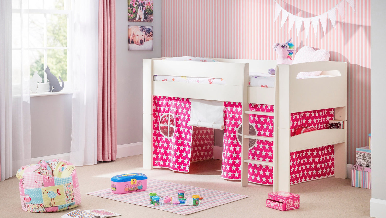 Transform your child's mid-sleeper into a vibrant play space with the Pluto Star Tent, available in delightful pink or blue. This stylish accessory adds a fun element to any bedroom, encouraging imaginative play while preparing for bedtime.