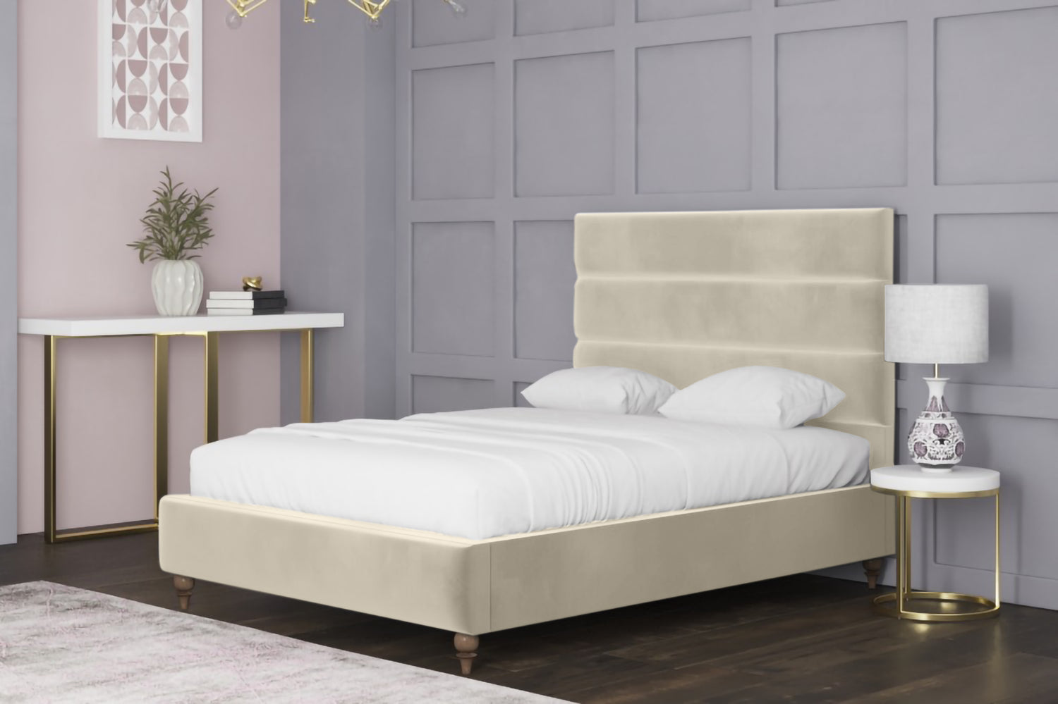 Premium Plush Fabric Bed Frame with Modern Headboard Design