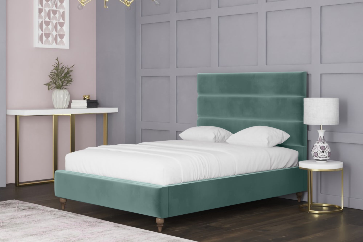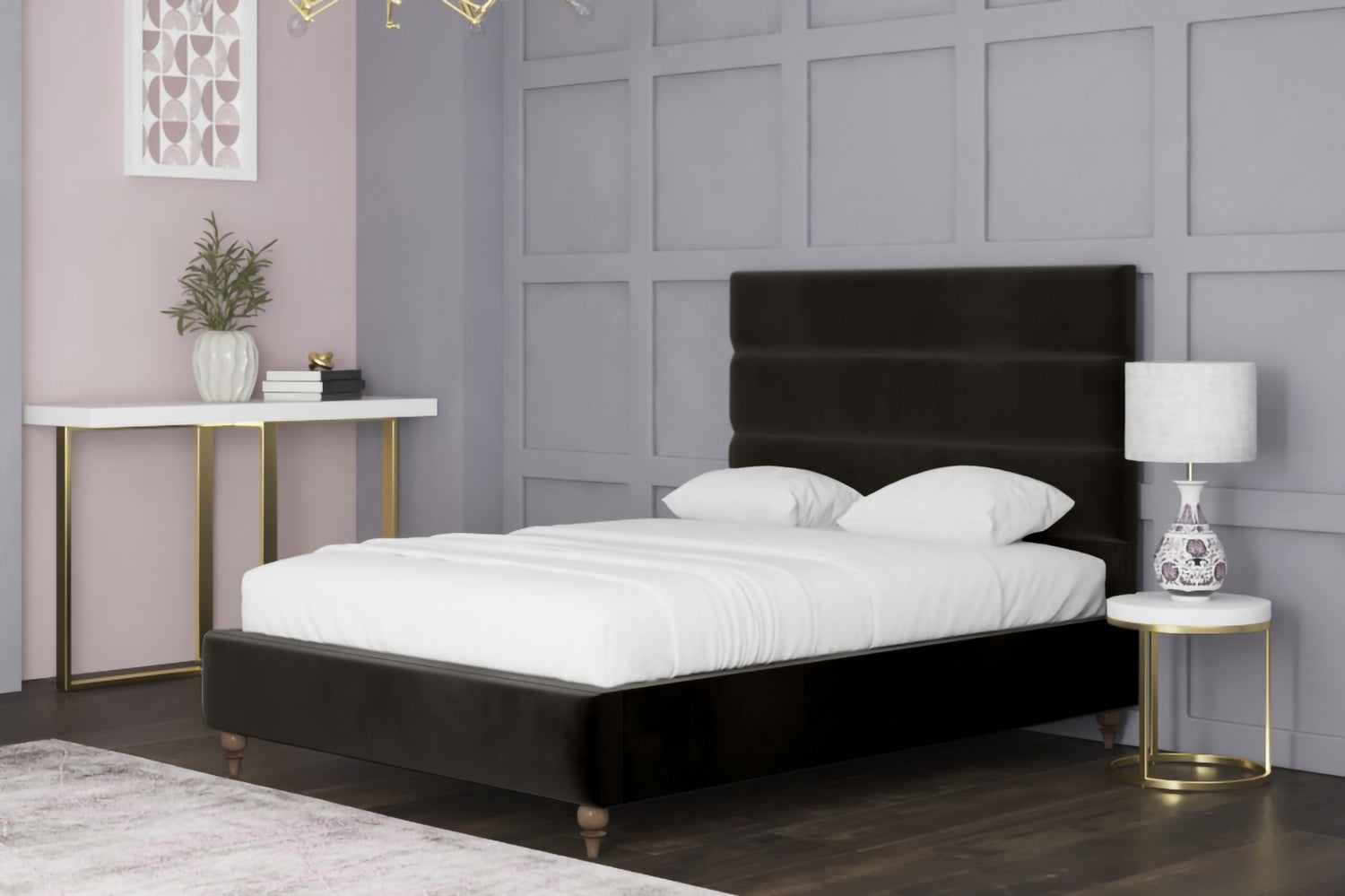 Enhance your bedroom with our premium plush fabric bed frame, featuring a modern headboard design. Order now and enjoy the perfect blend of luxury, comfort, and contemporary style.